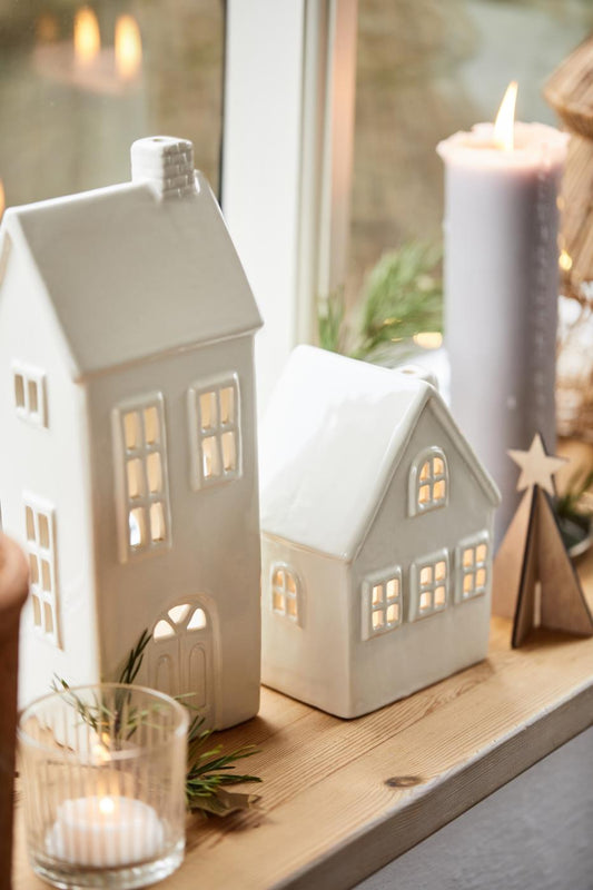 Danska hus till värmeljus beige skorstenar
