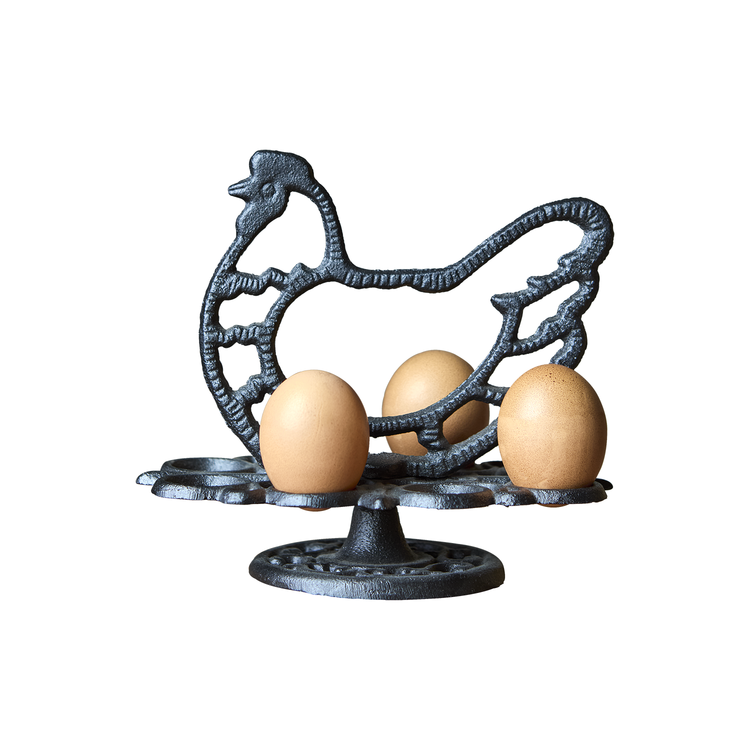 Ägghållare i svart gjutjärn formad som en höna. Praktisk och rustik design för förvaring och servering.ODIN ägghållare i svart gjutjärn förenar praktisk förvaring med dekorativ design. Formad som en höna blir den ett charmigt inslag i köket, perfekt för att hålla ägg på plats inför matlagning eller servering. Det robusta gjutjärnet ger hållbarhet och stabilitet, medan den svarta finishen ger ett stilrent uttryck. En tidlös köksdetalj som passar både moderna och lantliga miljöer.