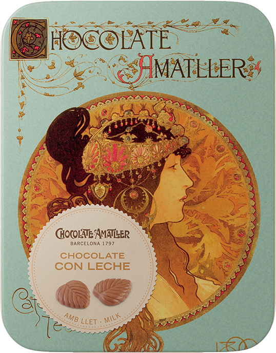 Läckra tunna mjölkchokladblad i plåtask dekorerat med klassiska affischer i olika motiv från märket Chocolate Amatller. Tillverkade enligt den traditionella metoden för urval, rostning, raffinering och konchning. Dessa fina blad kännetecknas av en balanserad kombination av intensiteten hos ghanansk kakao och mjölkens krämighet, allt med en lätt touch av naturlig vanilj.