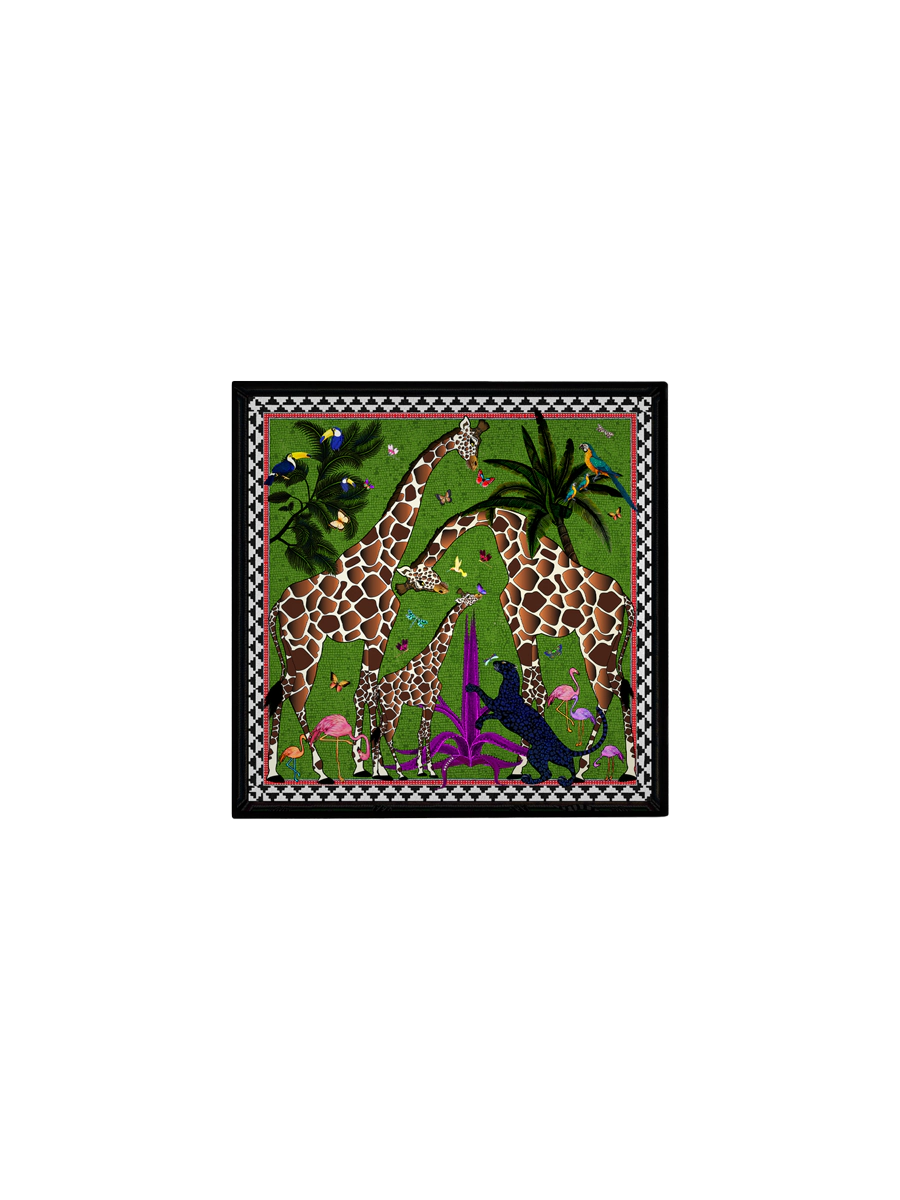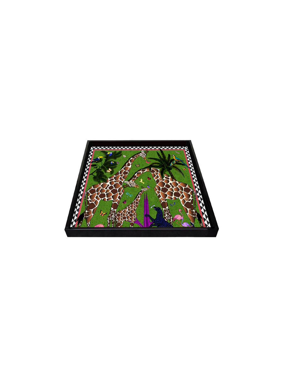 Handgjord lackerad bricka av trä med giraffer från det italienska varumärket Ortigia Sicilia.