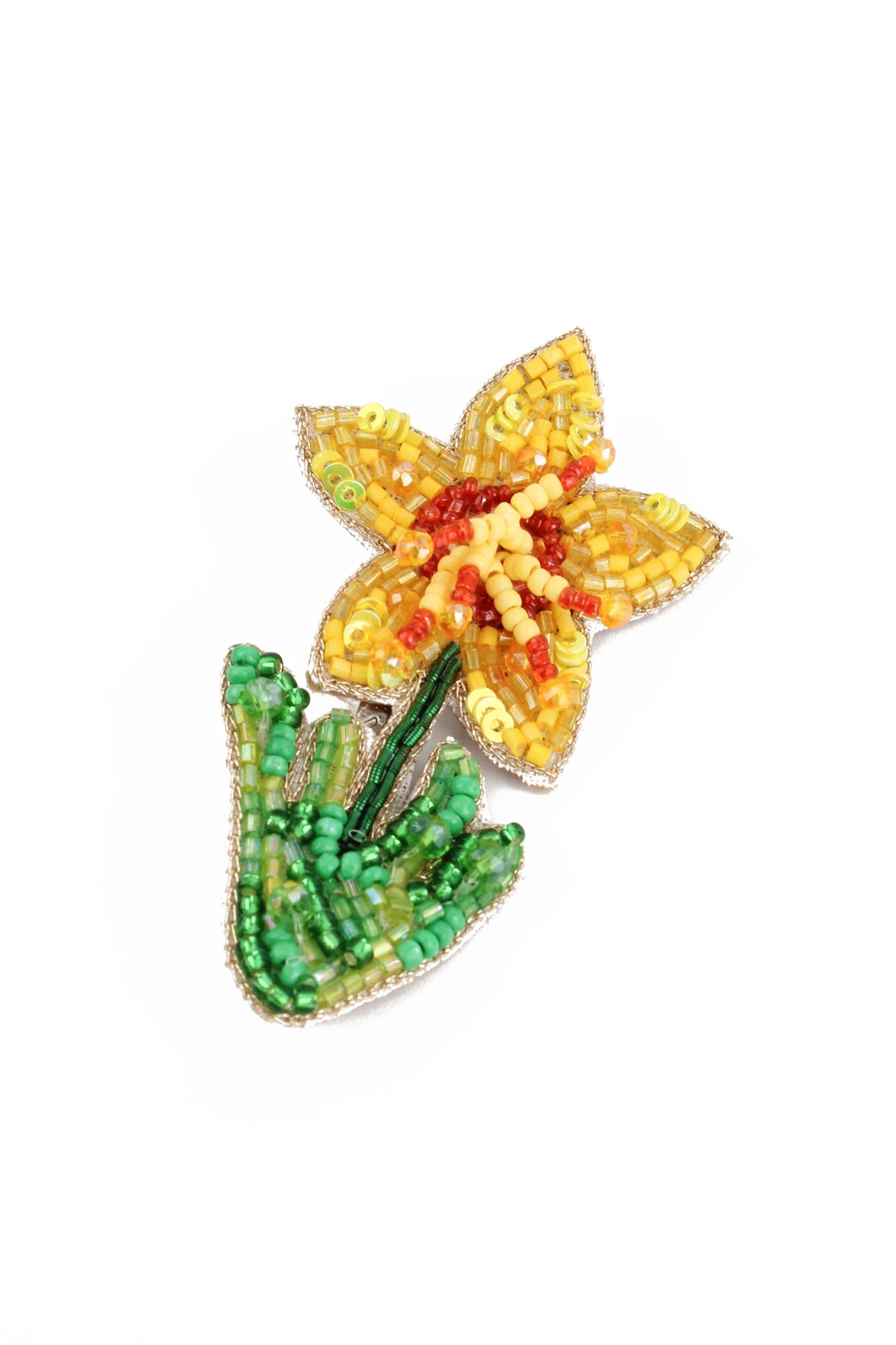 Brosch med en söt påsklilja med broderade pärlor som garanterat gör succé för din outfit!