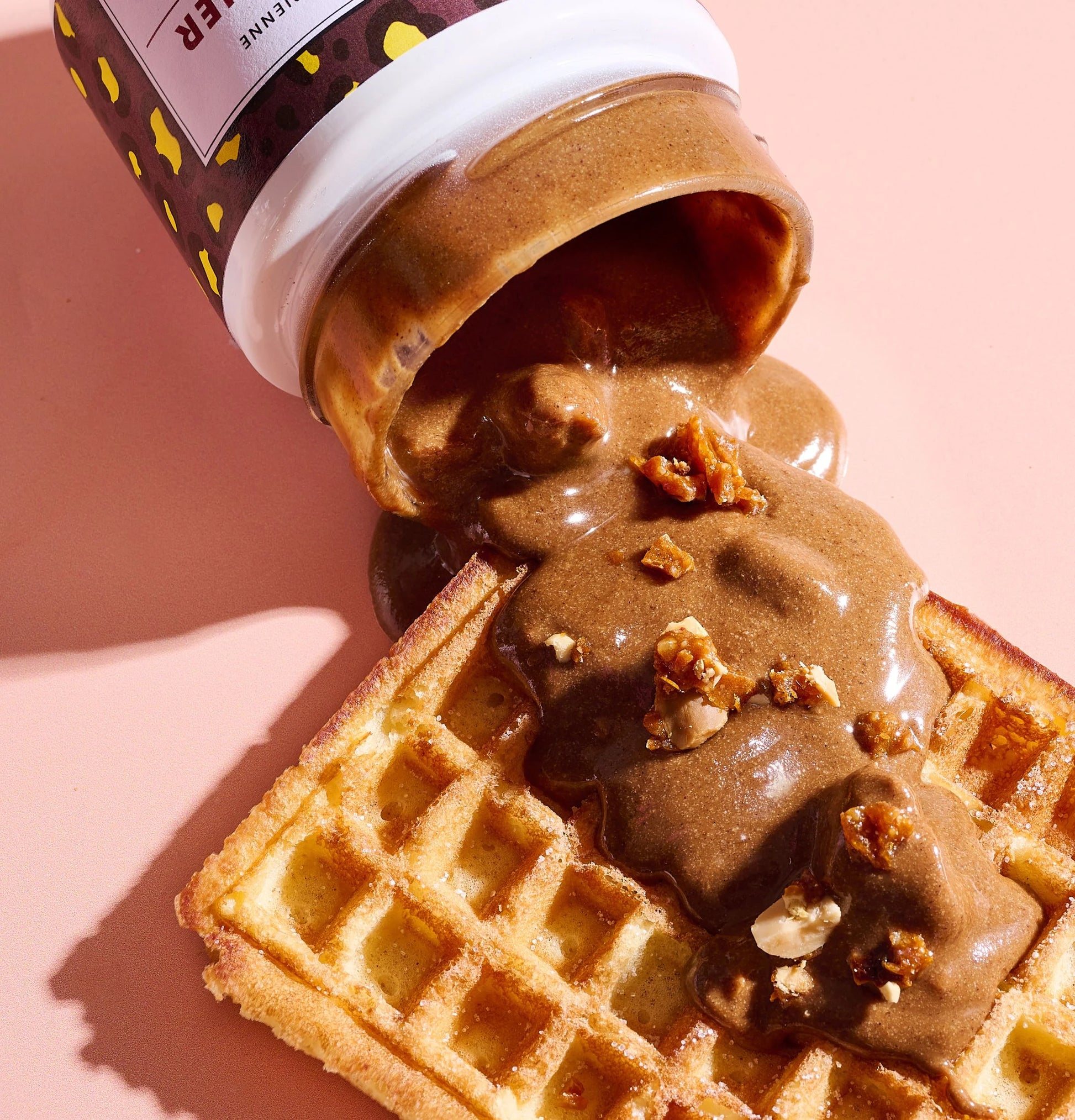 Tänk dig: krossade hasselnötter och mandlar dränkta i mörk choklad. Lägg nu i några krispiga chouchou-bitar. Du vet, de där rostade jordnötterna under sitt krispiga karamellöverdrag. Men se upp, det slutar inte där, för det perfekta brottet har alltid en twist: varje burk gömmer, mitt i mitten, ett böljande hjärta av salt karamell. En bomb redo att explodera i din mun.