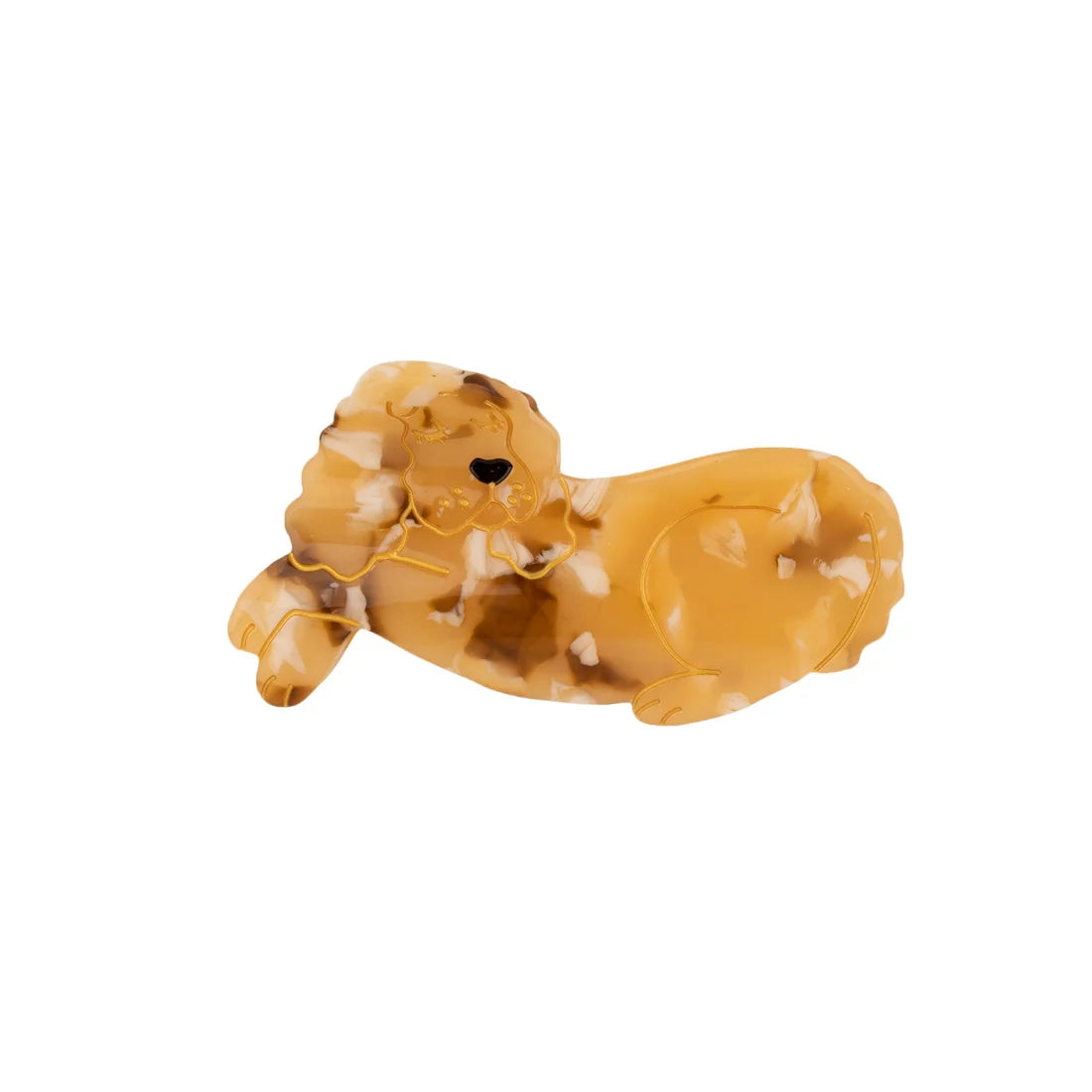 En hårspänne till cocker spaniel tillverkad av acetat som garanterat kommer att dra till sig uppmärksamhet. Med sina stora, lockiga öron och små, korslagda framtassar regerar denna cocker spaniel över alla sina kompisar.