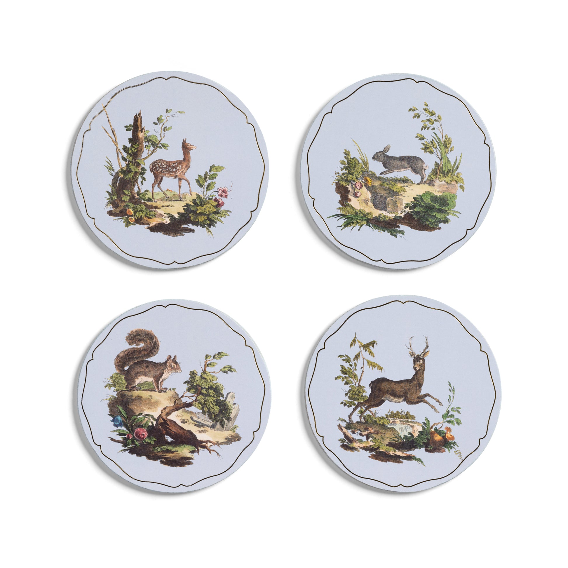 Vackra glasunderlägg / coasters med i jaktstil med motiv från skogen med hare, rådjur, hjort och ekorre. Fint att duka fram drinken på eller att ha till jaktmiddagen. Passar det lantliga hemmet eller övrig inredning i jaktstil. Kommer i en fin ask. En perfekt present!