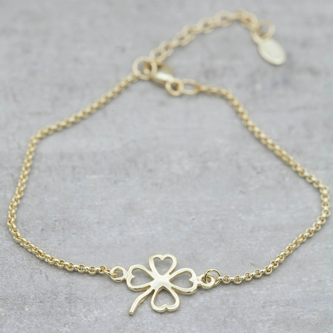 Fint armband med konturen av ett lyckoklöver. Halsbandet är handgjort i äkta silver och förgyllt med 18k guld. Faiths klöverhalsband är en symbol för vänskap och lycka.