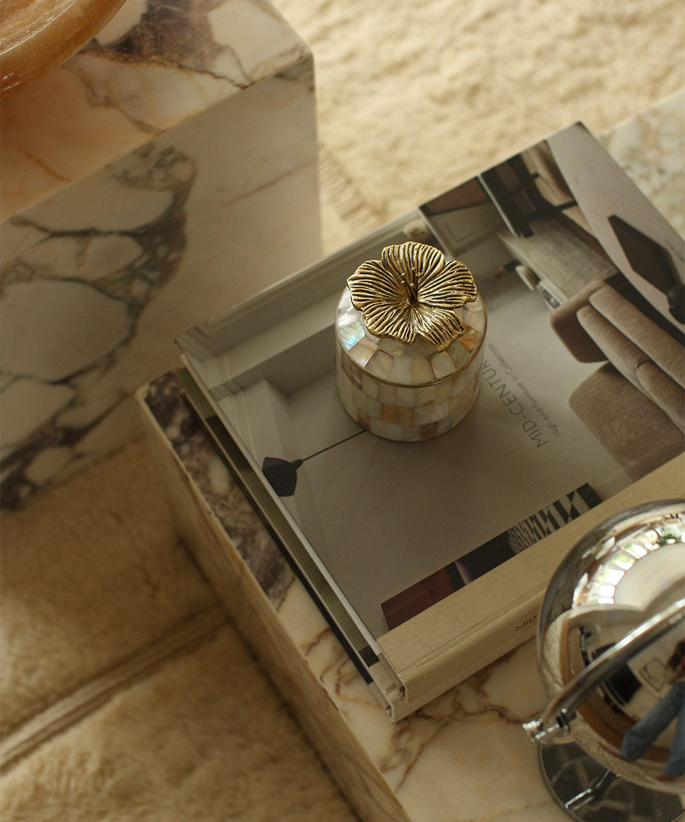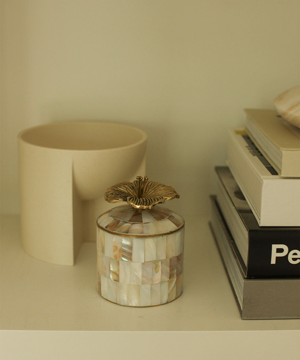 Handgjord av 60 % återvunnen mässing, 40% naturligt snäckskal, är denna utsökta ask ett sant smycke för ditt hem.