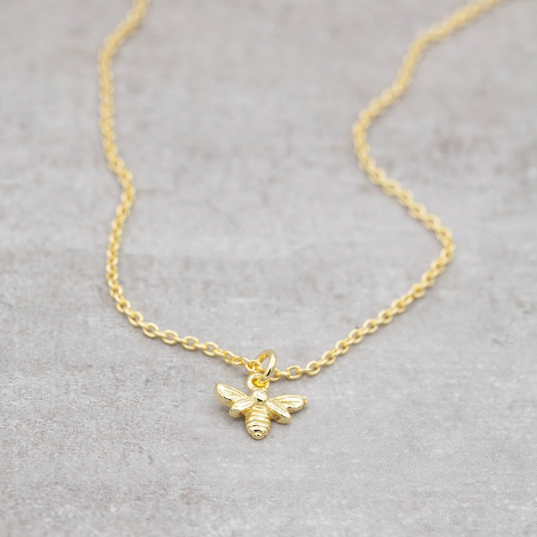 Litet och nätt halsband med ett sött litet bi, handgjort i äkta silver och plätterad i 18 karat guld.