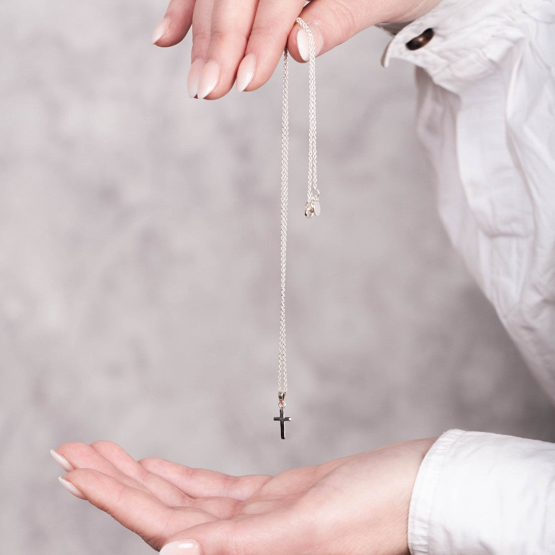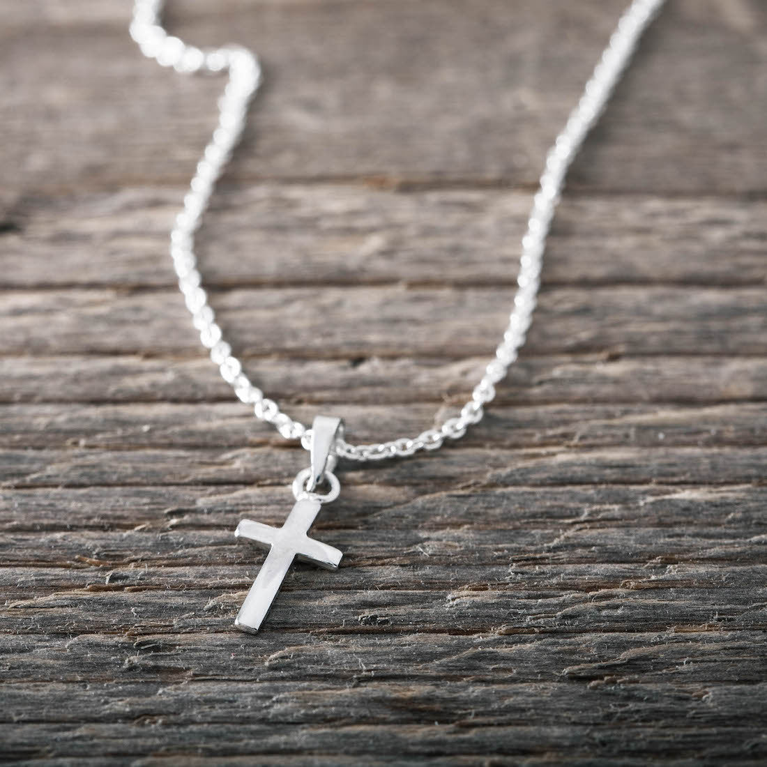 Handgjort silverhalsband med ett kors. Ett klassiskt halsband som passar vid alla tillfällen. Snyggt att bära solo eller kombinera med fler halsband. En fin present till konfirmanden eller dopet. Sökord: Konfirmationspresent, doppresent