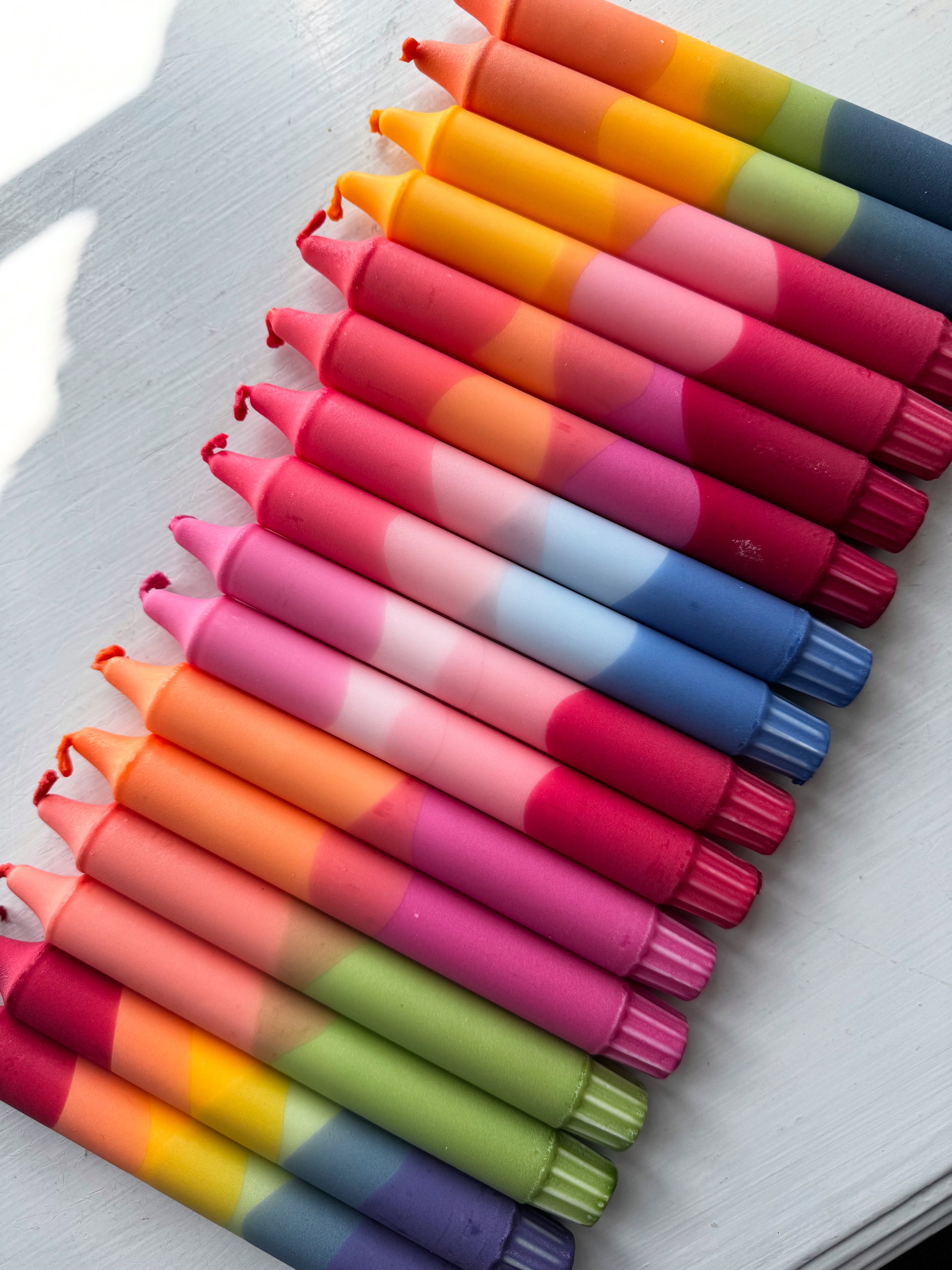 Alla ljus är handgjorda och därför kan det finnas små skillnader mellan färg och placering av mönster. Detta gör att du som kund kan vara stolt över att du har ett unikt ljus. Ljusen säljes styckvis.