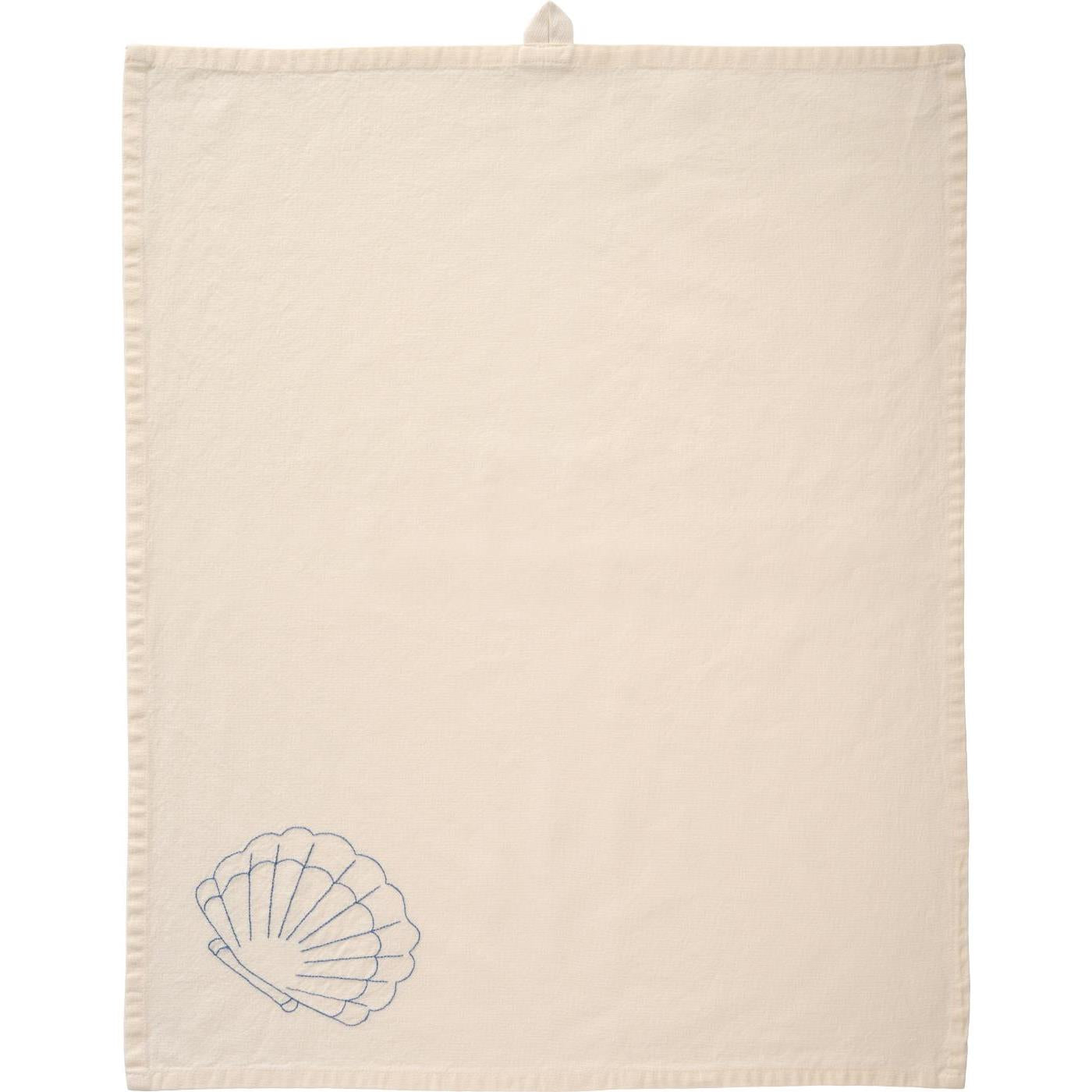 Elegant kökshandduk i den välkända smörkrämsnyansen med fräscht broderi av en snäcka. Skapa en estetisk och somrig känsla i köket!
