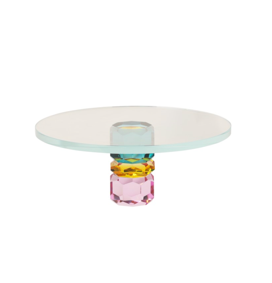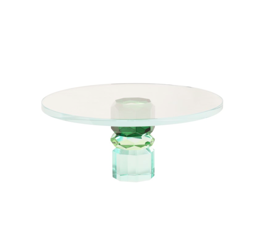 Uppläggningsfat, tårtfat, kakfat i glas från den populära kristallserien av franska C'est Bon. Finns i två olika färger.