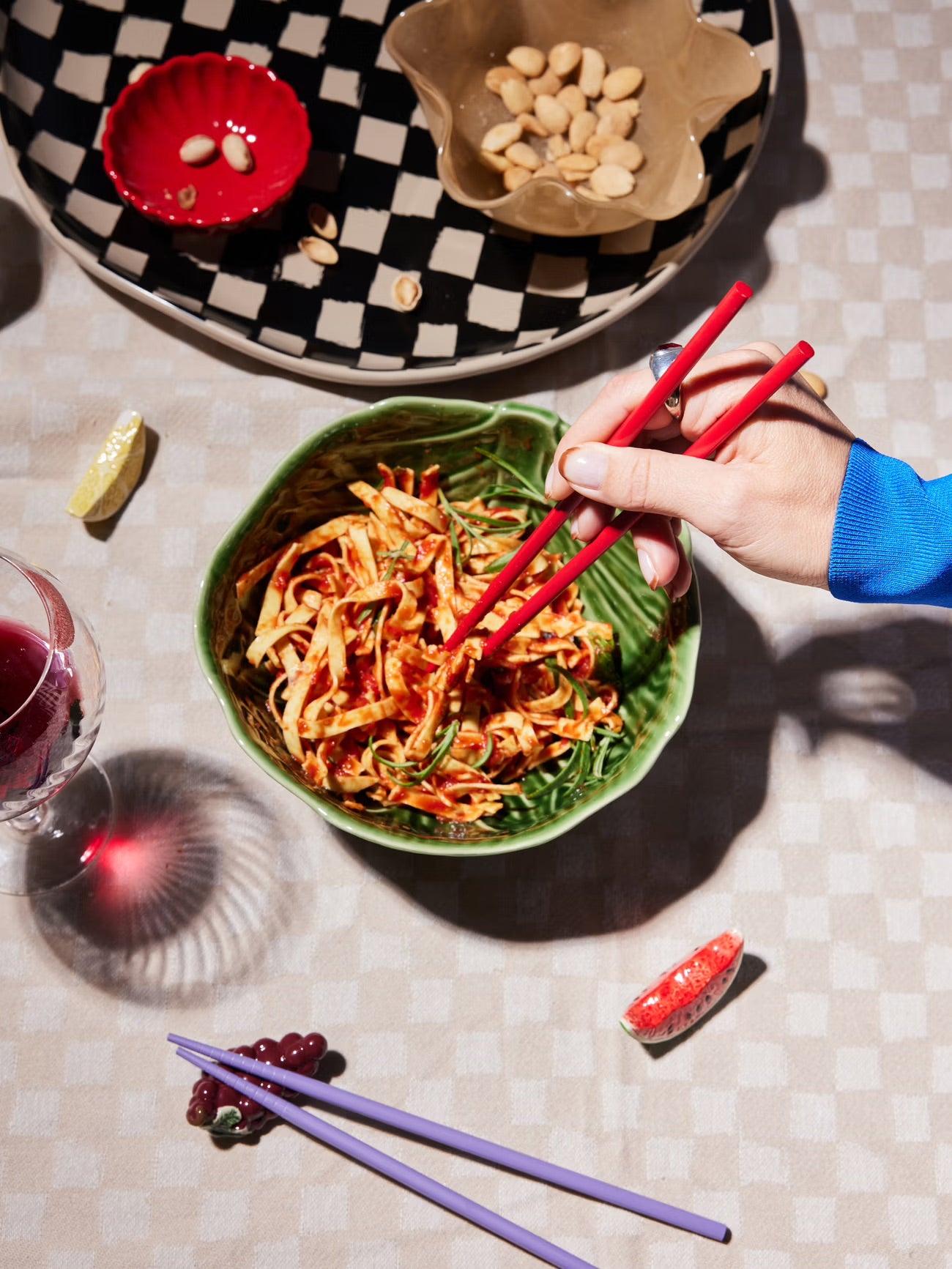 Vi skördar grönsaker som aldrig förr och inspireras av de naturligt lekfulla formerna. Skål Veggie är en skål av kålblad som är perfekt till pasta, ramen, nudlar, soppor etc. En garanterat glad och användningsbar detalj som är enkel att tycka om. Den gröna färgen matchas med allt och lyfter vardagsporslinet oavsett om det är med en eller flera skålar. Finns en mindre variant här. Skålen är diskmaskinssäker för enkel rengöring och underhåll. Ej lämpligt för mikrovågsugn eller ugn.