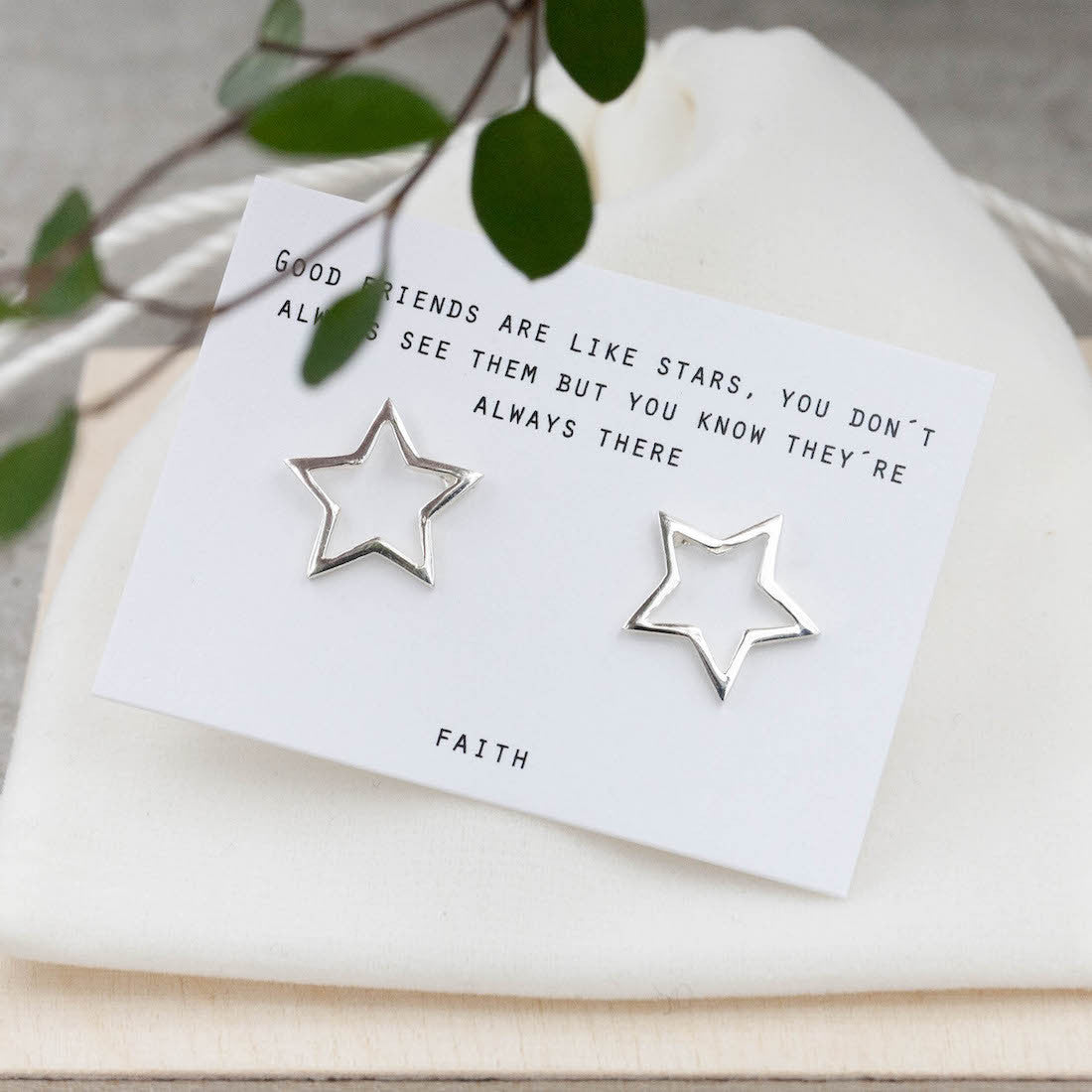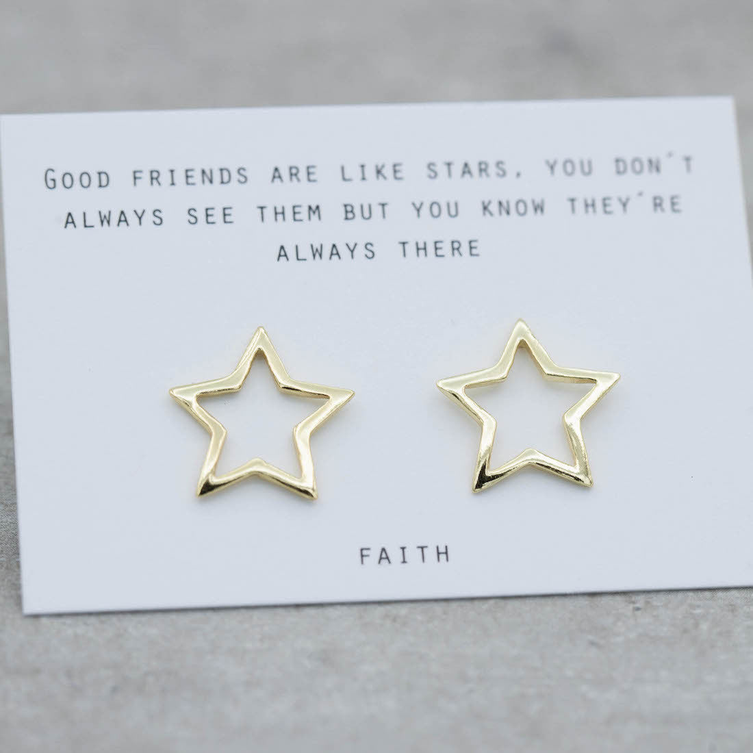 Örhängena kommer tillsammans med texten: Good friends are like stars, you don't always see them but you know they're always there.