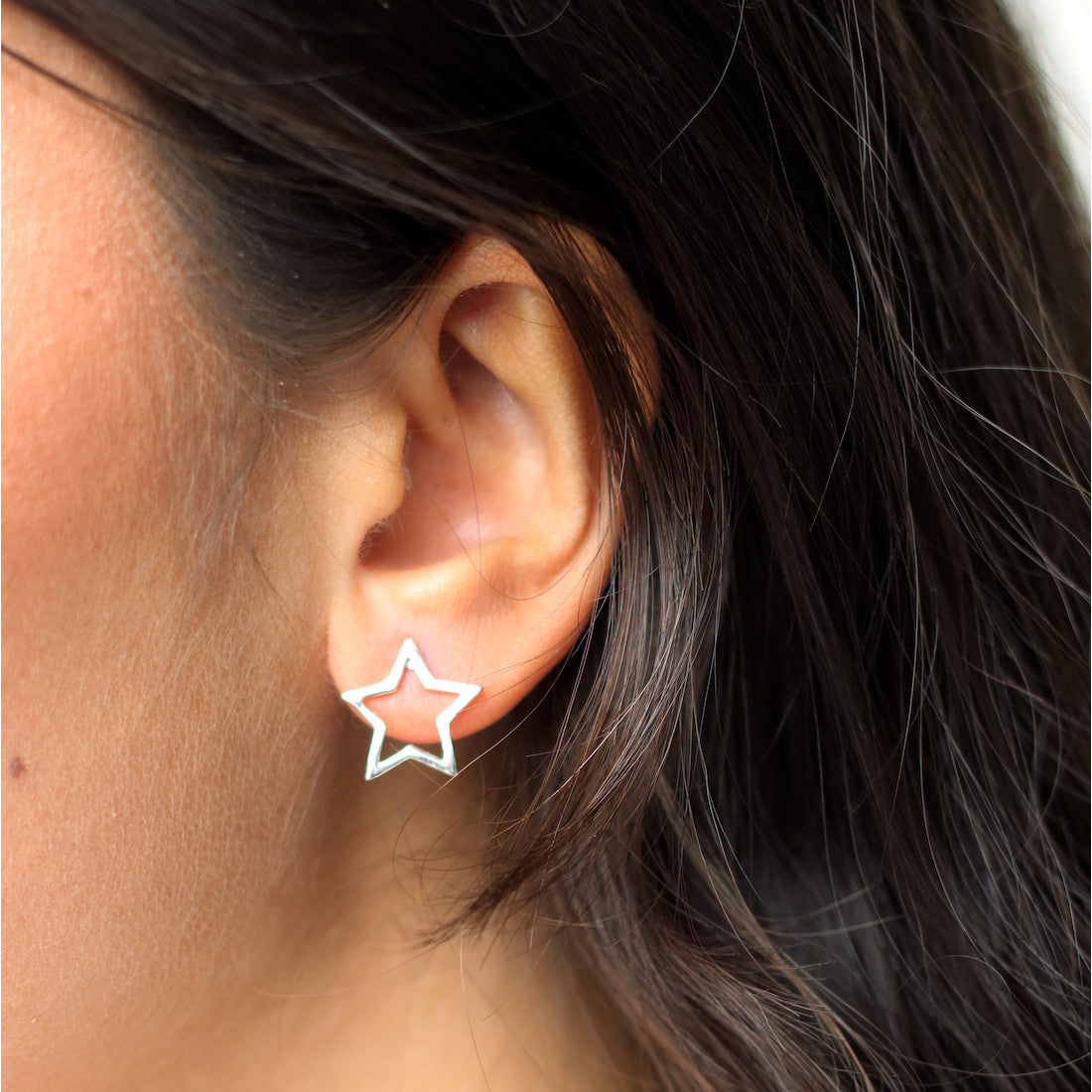 Superfina örhängen med konturen av en stjärna, handgjorda i äkta silver från det svenska varumärket 925 by faith. Finns även pläterade med 18K guld.
