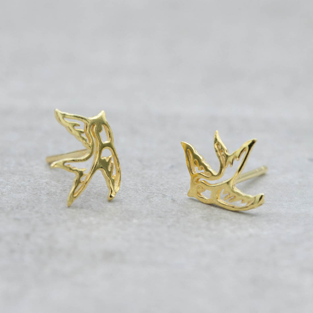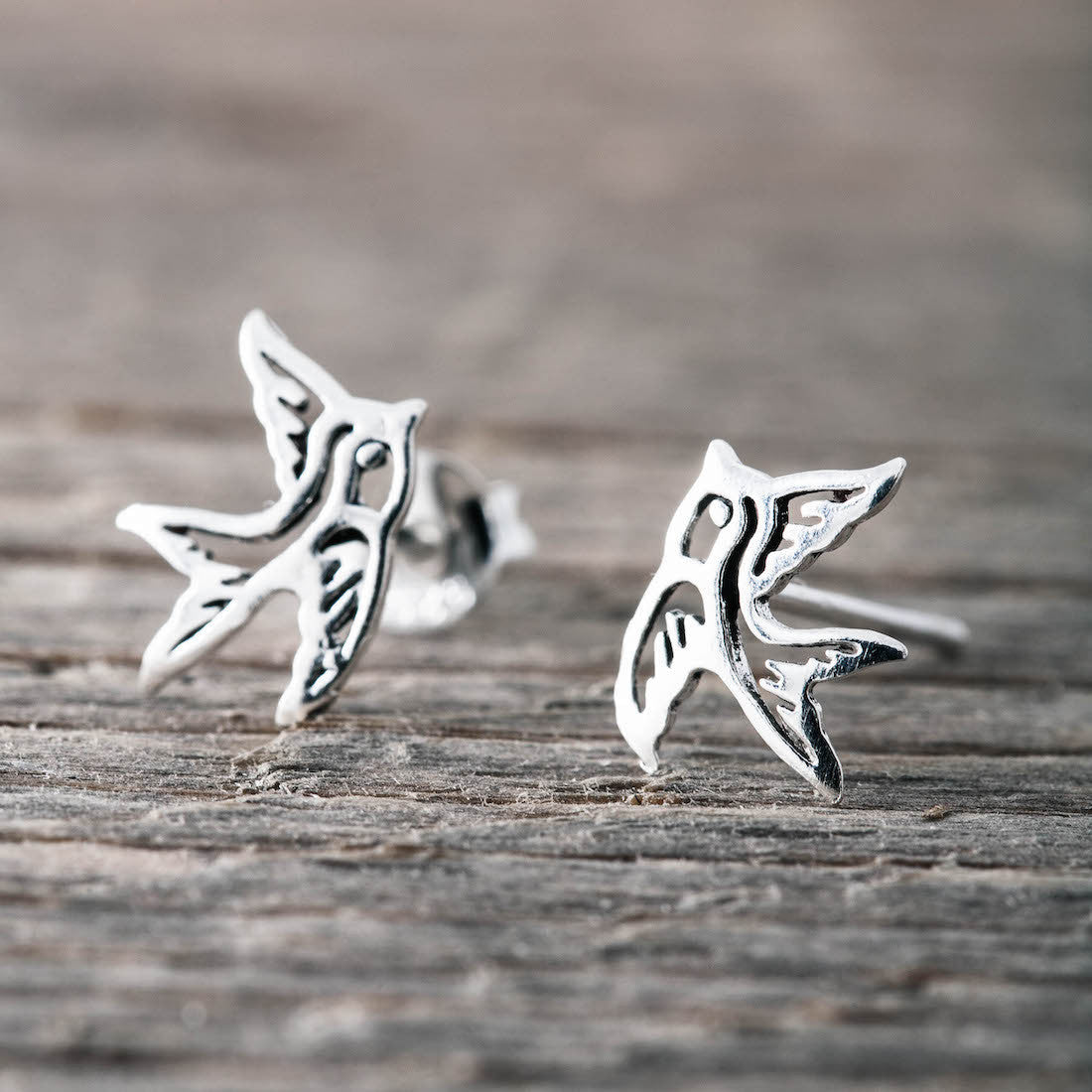 Stilrena silverörhängen i form av en liten svala. Finns även förgyllda med 18K guld.