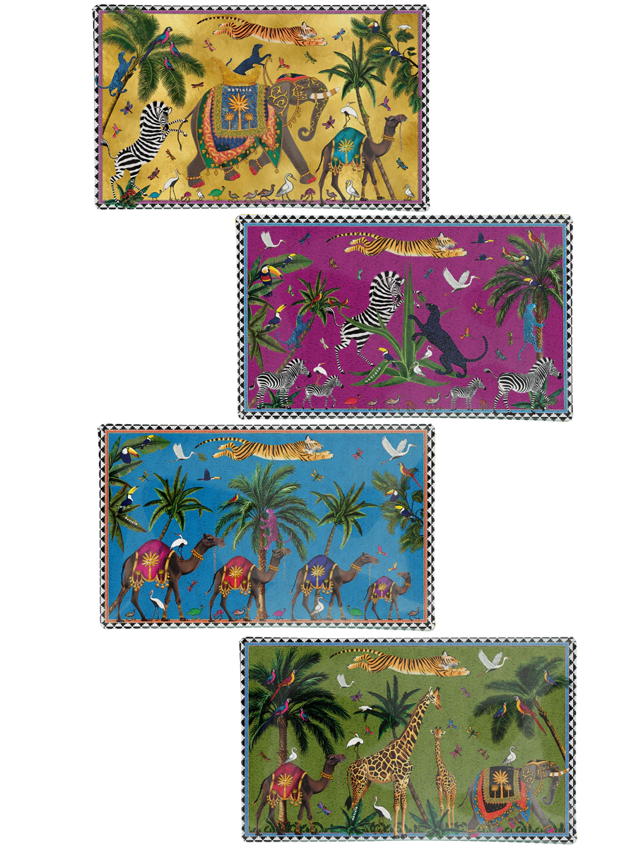 Otroligt vacker plåtask med 4 glasfat i olika mönster från Ortigia Sicilia.