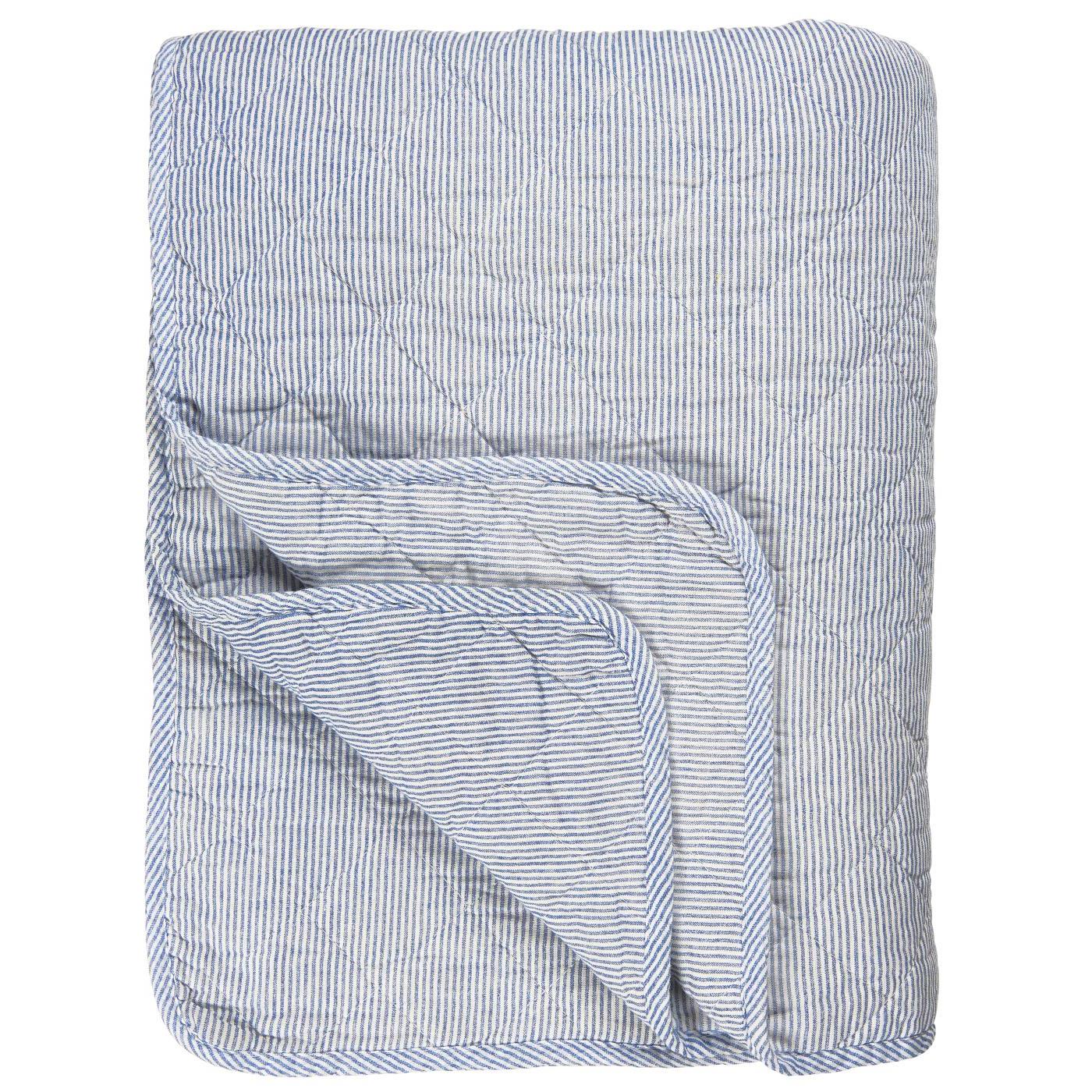 Quiltad pläd vit/blå randig 180 x 130 cm