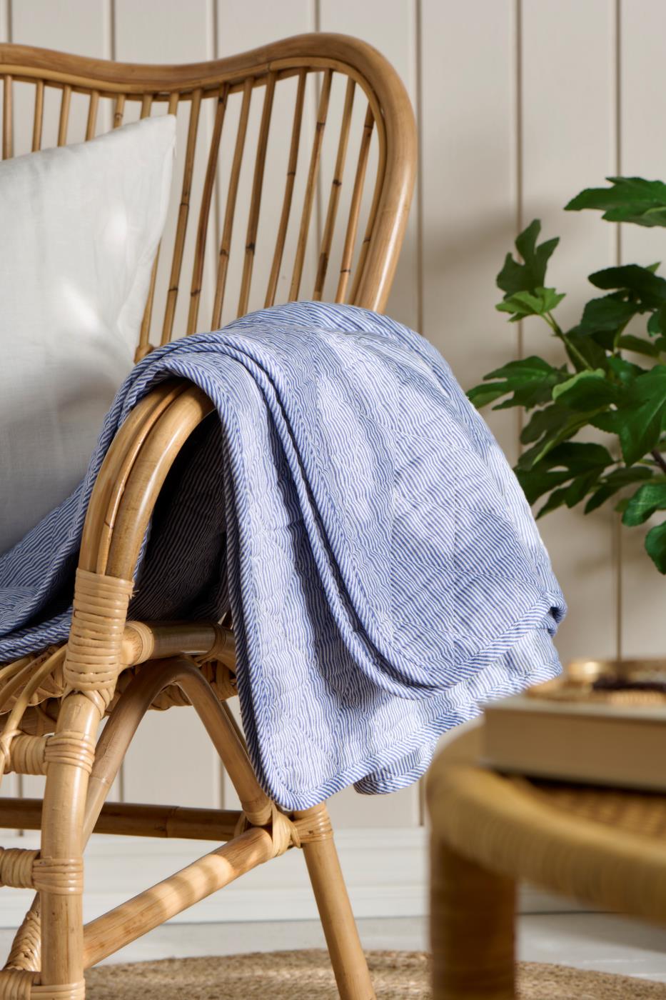 Pläd som är perfekt att lägga på fotändan av sängen så man slipper dra över ett stort överkast. Även mysig att ha som filt eller underlag på gräsmattan i sommar.