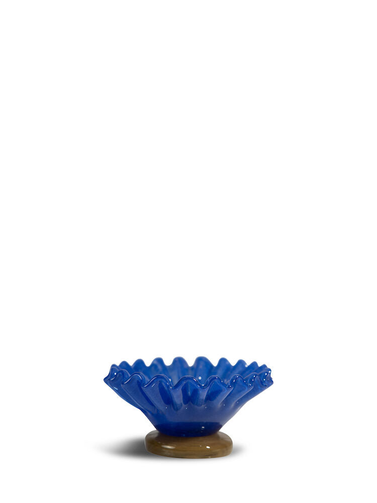 Med inspiration från modevärldens plisserade kjolar påminner formen om en blomma som precis ska slå ut sina blad. De glaserade färgerna och den runda, låga foten i kontrast gör Lori till en skapelse man inte glömmer i första taget. Lori känns som glaskonst, eller som kaxiga karameller i glättigt kolapapper. Oavsett var Lori flyttar in gör den det med samma pondus som hos exklusiva troféer. Loris produkter är handgjorda vilket gör att varje enskild del är unik och skiljer sig åt. Använd till värmeljus, smycken, nötter eller bara som den är. Kommer i blå/beige. Från svenska Byon.