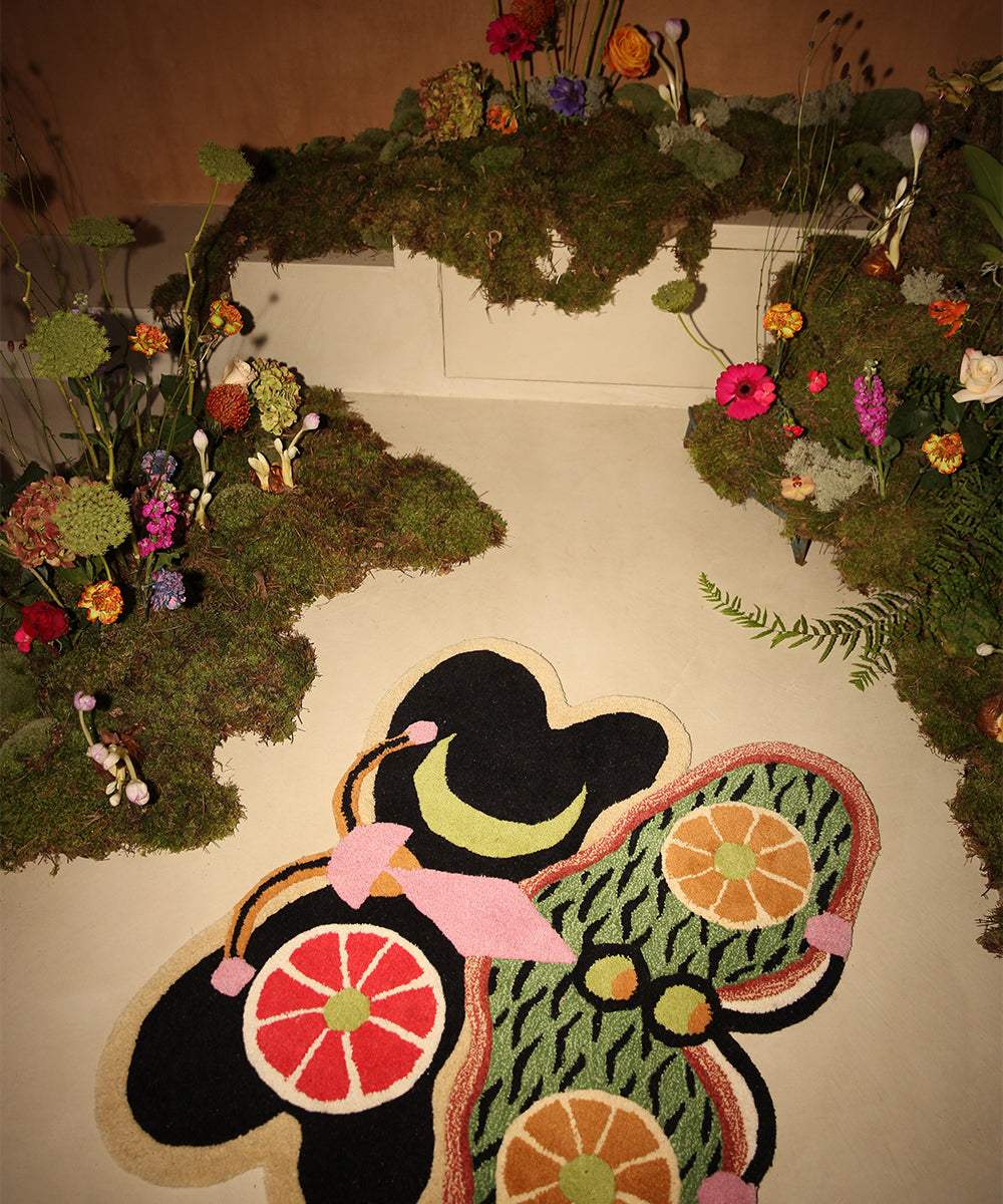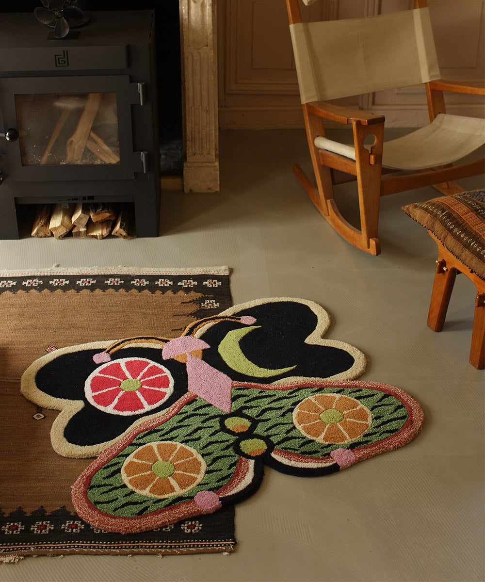 Förena konst och natur i ditt hem med Tip Top Tiger Butterfly mattan, en del av den exklusiva Les Papillons-kollektionen från Doing Goods. Denna matta är mer än bara en inredningsdetalj – den är ett lekfullt konstverk för ditt golv eller din vägg.