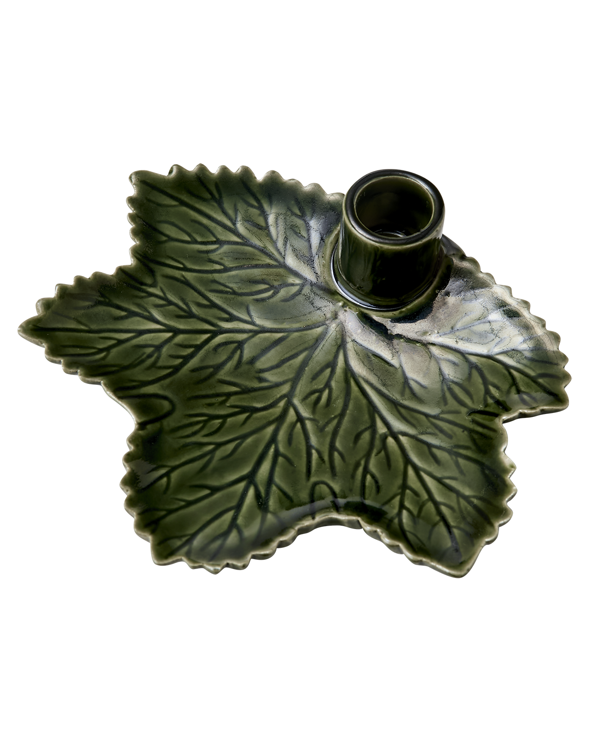 Vår VILLE ljusstake i grön stengods förenar värme, hemtrevnad och naturlig enkelhet. Den stilrena formen och de jordnära tonerna gör den till en vacker inredningsdetalj som skapar en stämningsfull och mysig atmosfär – perfekt för höstens och vinterns dukningar.